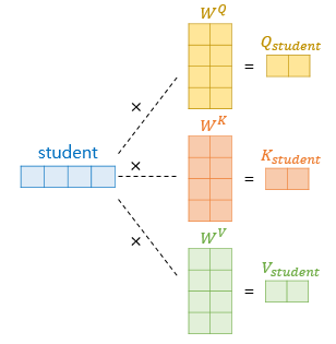 그래서 각 단어 embedding 별로 key/query/value weight matrix가 존재하게 되며 transformer의 학습 대상은 이 matrix가 된다.