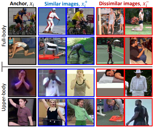 목적은 위와 유사하게 human pose가 들어있는 이미지 만으로 유사한 pose를 지닌 이미지를 DB에 query 하는 embedding 하는 것이다. joint 좌표는 없어도 된다.